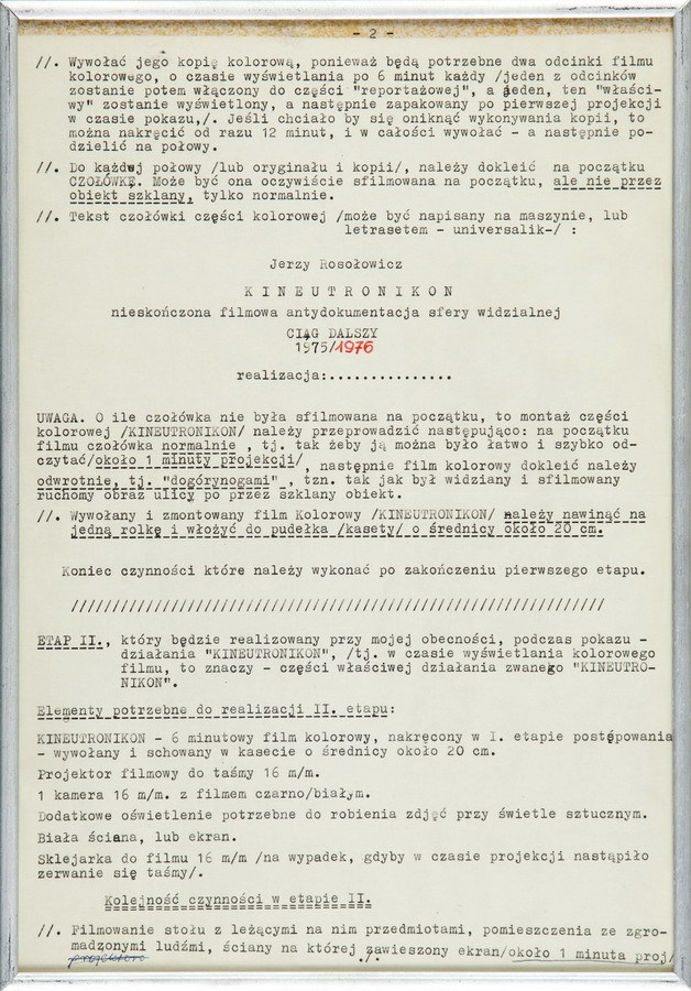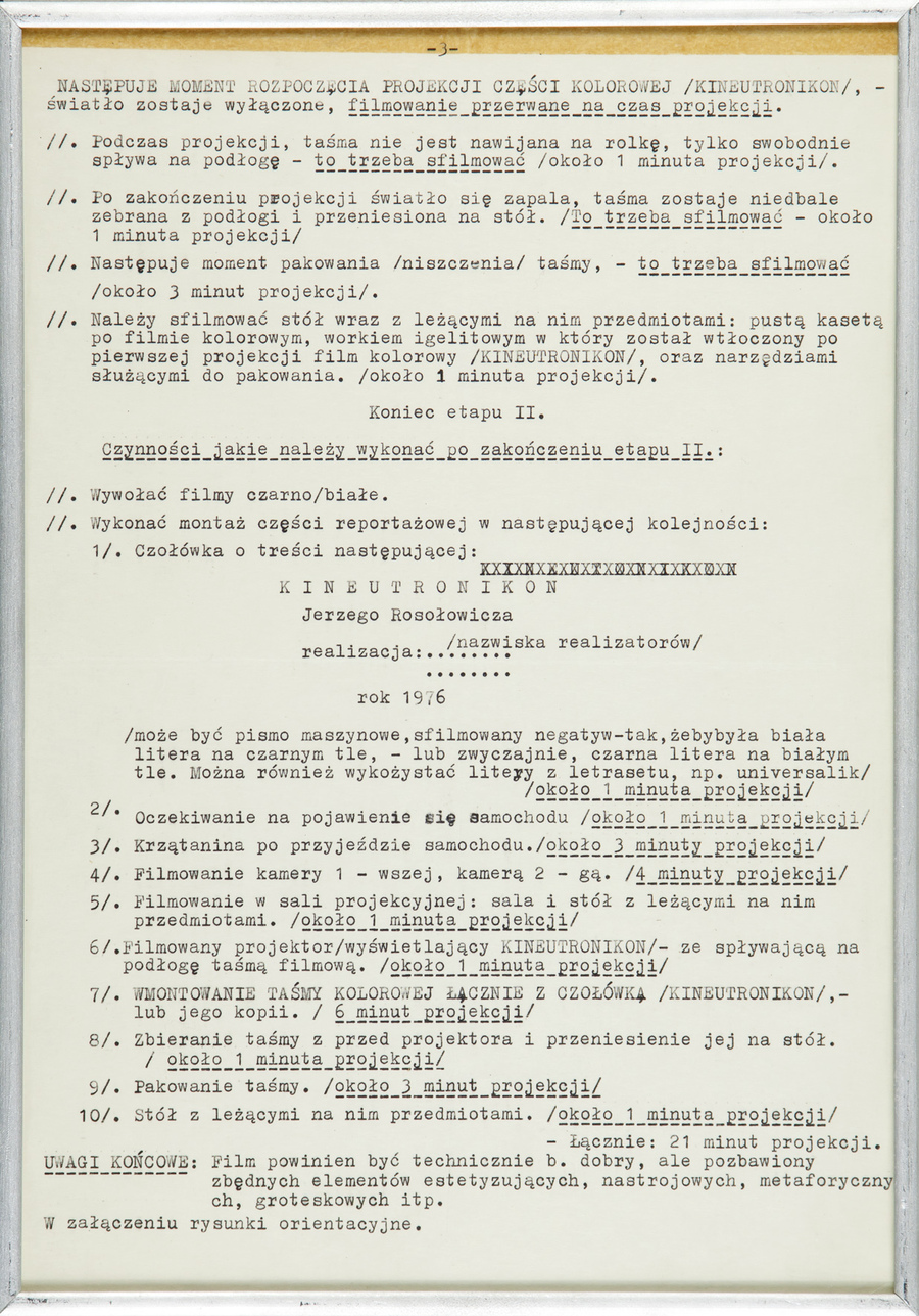 Konceptualna instrukcja obsługi obiektu Neutronikon, który jest układem soczewek o różnych kształtach i wielkościach przekształcających obraz przez niego oglądany. Instrukcja sugeruje użycie obiektu do filmowania. Efektem tego jest nowe dzieło – Kineutronikon.